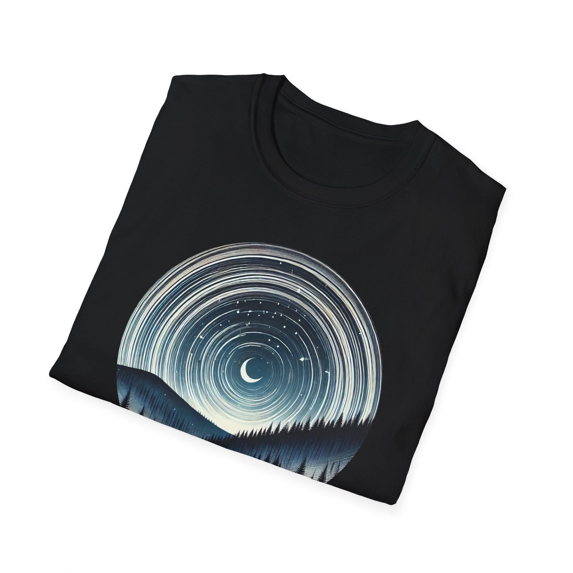 Get lost in the mystical beauty of the cosmos with this stunning graphic tee, featuring a breathtaking crescent moon, swirling star trails, and serene mountain landscapes. This nature-inspired design captures the peaceful yet powerful energy of the great outdoors under a celestial sky. Whether you're camping under the stars, hiking through the wilderness, or simply dreaming of your next adventure, this tee lets you carry the magic of the night sky with you.