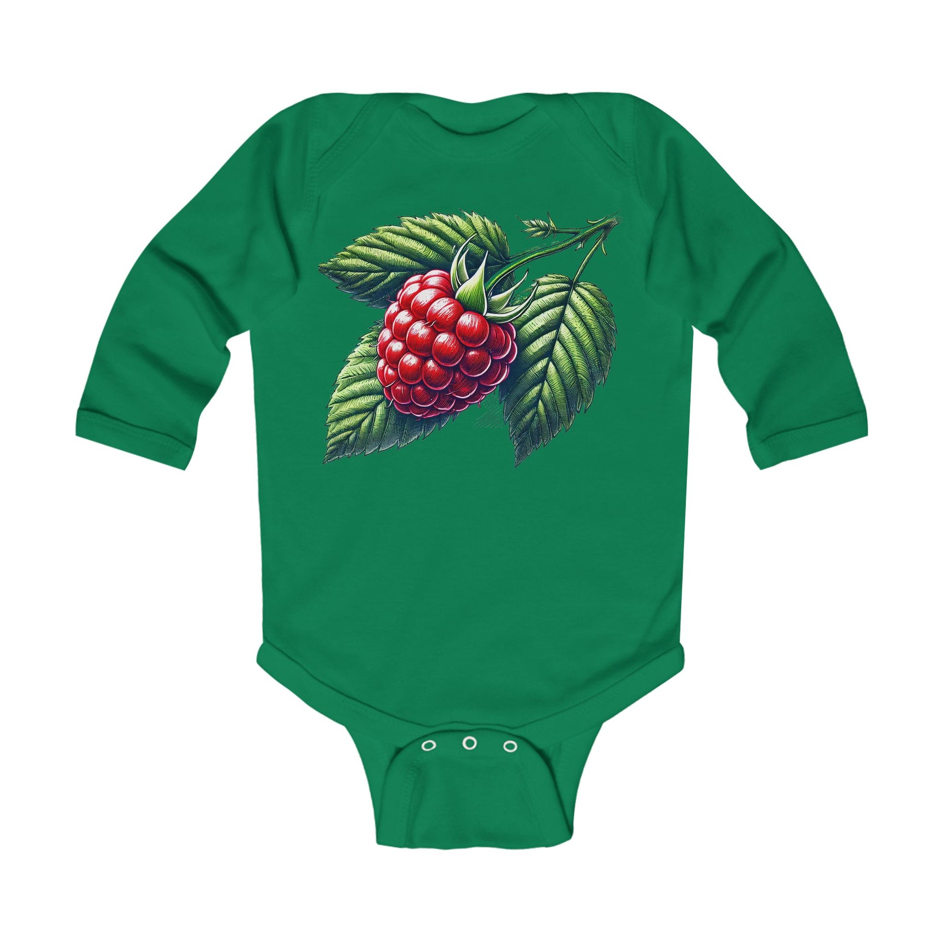 Dress your little bundle of joy in this adorable Raspberry Baby Onesie, where comfort meets charm. Featuring a beautifully detailed raspberry illustration, this onesie captures the essence of nature’s sweetness. Made from premium, breathable cotton, it ensures your baby stays cozy and stylish all day long. The long sleeves provide added warmth, making it ideal for cooler days, while the easy snap closures allow for quick and hassle-free diaper changes. Whether it's for a casual day at home or a special outing, this onesie is the perfect addition to your baby’s wardrobe.